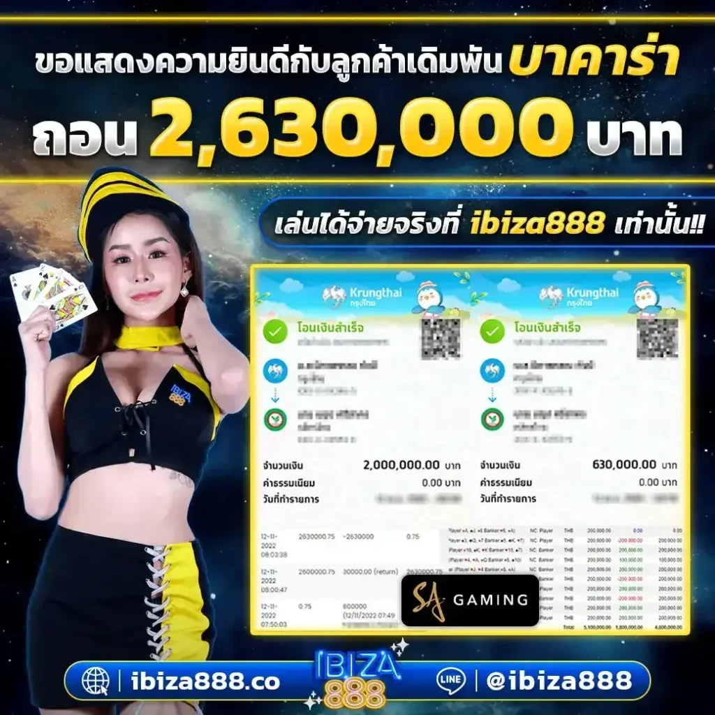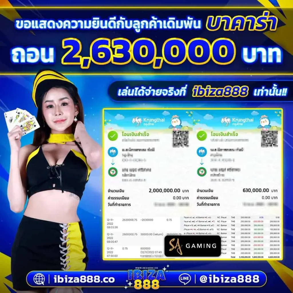 เว็บ ibiza888 จ่ายจริง มีรีวิวและหลักฐานการโอน จากลูกค้าตัวจริง จ่ายทุกบิล บิลล้านก็จ่าย